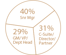 Our student profile include business owners, top executives, and government officials from around the world. With an average age of 42 years and 18 years of work experience from over 11 countries and with more than 60% of them as directors and C-suite executives.